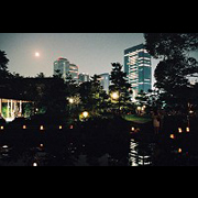 開門と同時に予想を超える多くのお客様が来られた。都心の庭園で月を待つ。