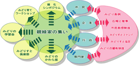 これと併せて市民意識調査などを基に、今後のみどりのまちづくりのあり方を検討した。「市民・企業・行政の協働」による対話で目指す都市像を「あらゆる個性といのちが共生できるまち」とした。